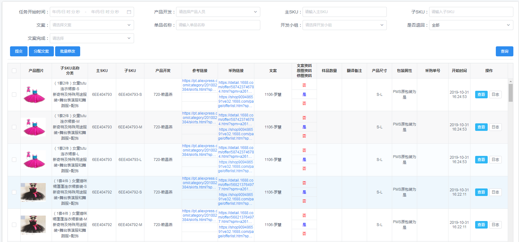 用户进入待修图任务列表页面,可根据查询条件查询待修图的产品数据;
