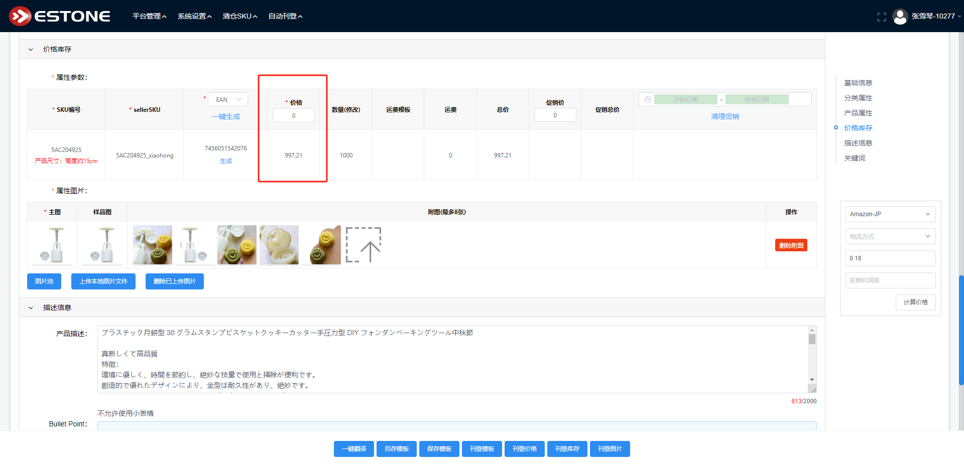 在模板页面,销售可对产品资料进行细化,并刊登到Amazon平台。