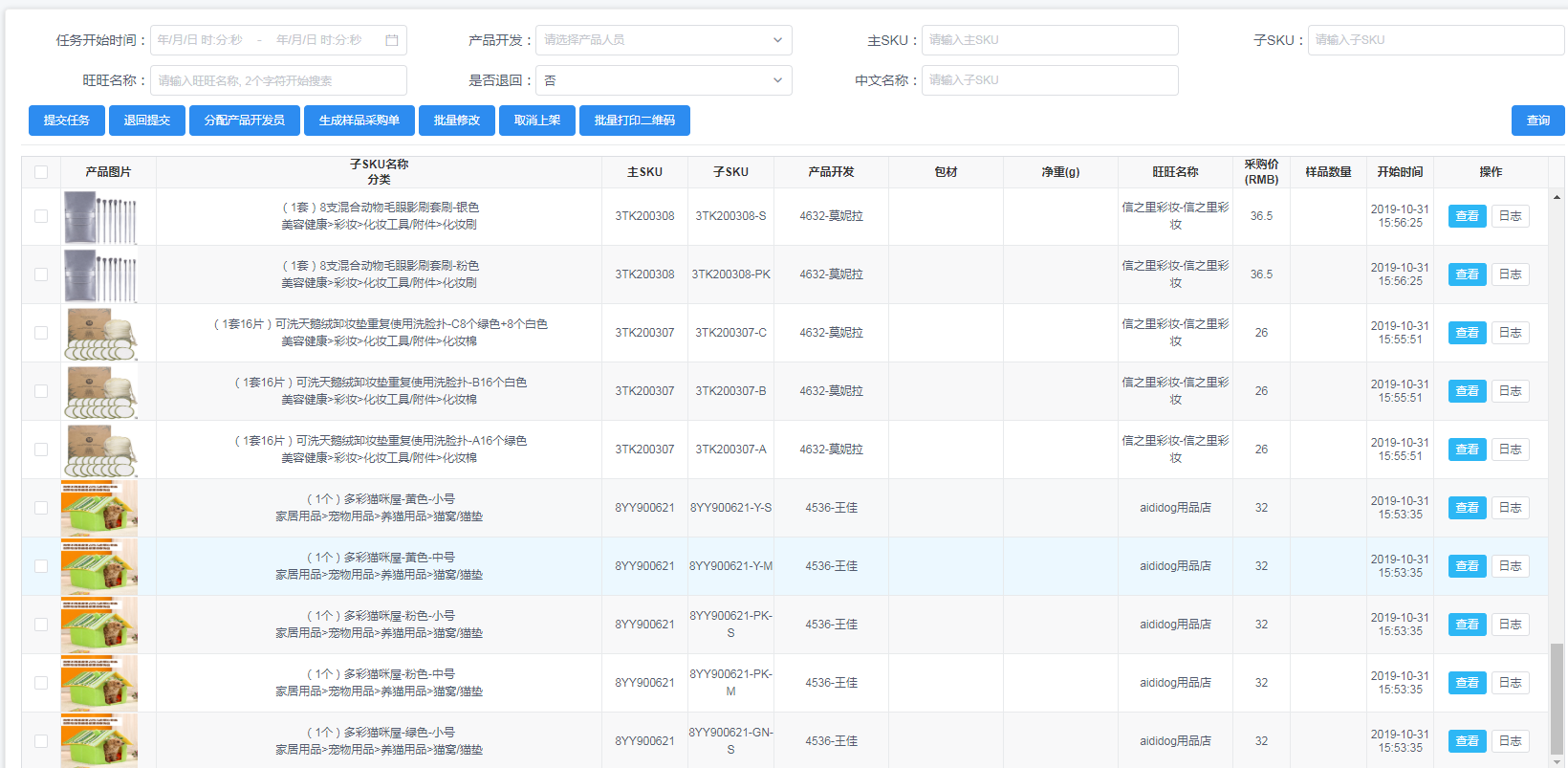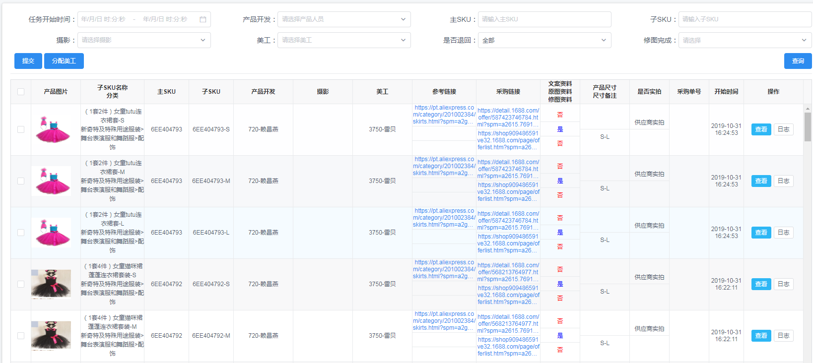 用户进入待修图任务列表页面,可根据查询条件查询待修图的产品数据;