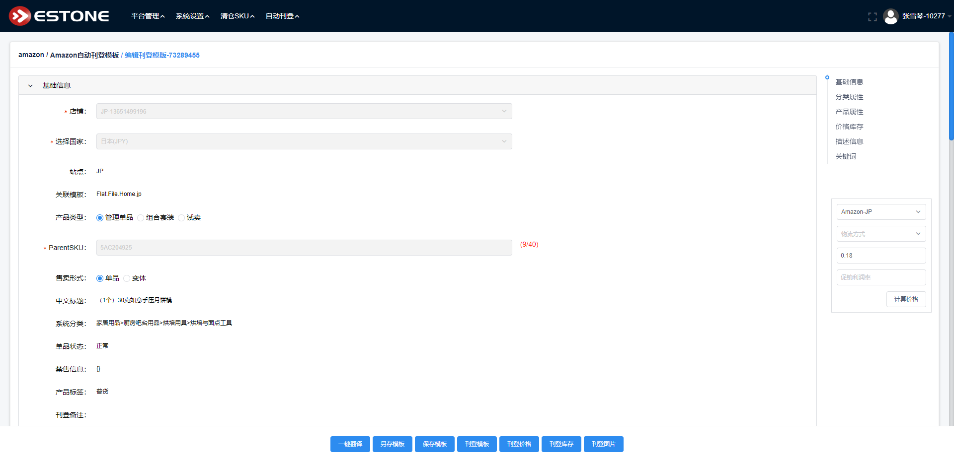 在模板页面,销售可对产品资料进行细化,并刊登到Amazon平台。