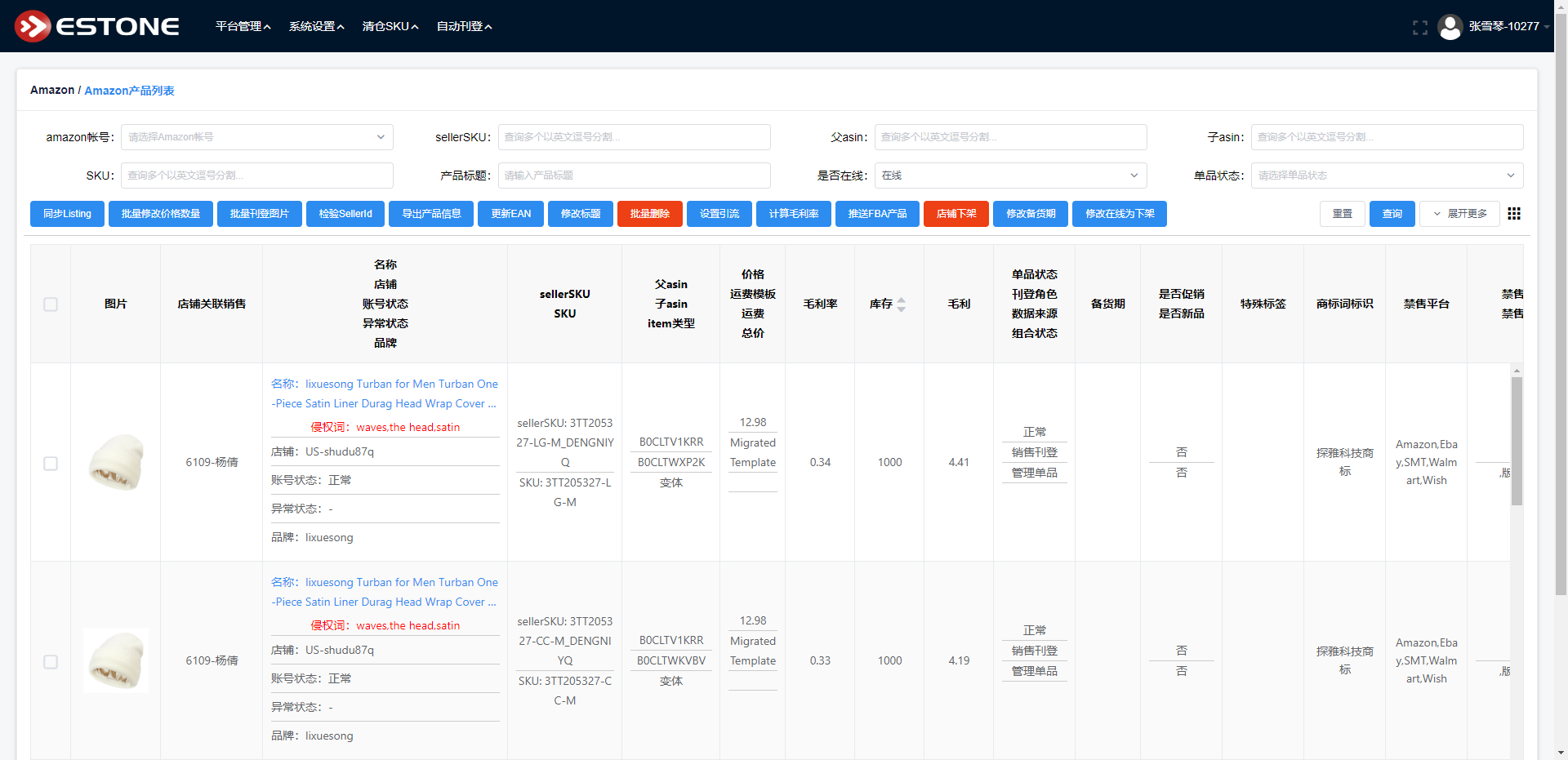 在在线列表,从平台同步店铺的产品到系统,可对链接进行调价,调库存,下架等操作。