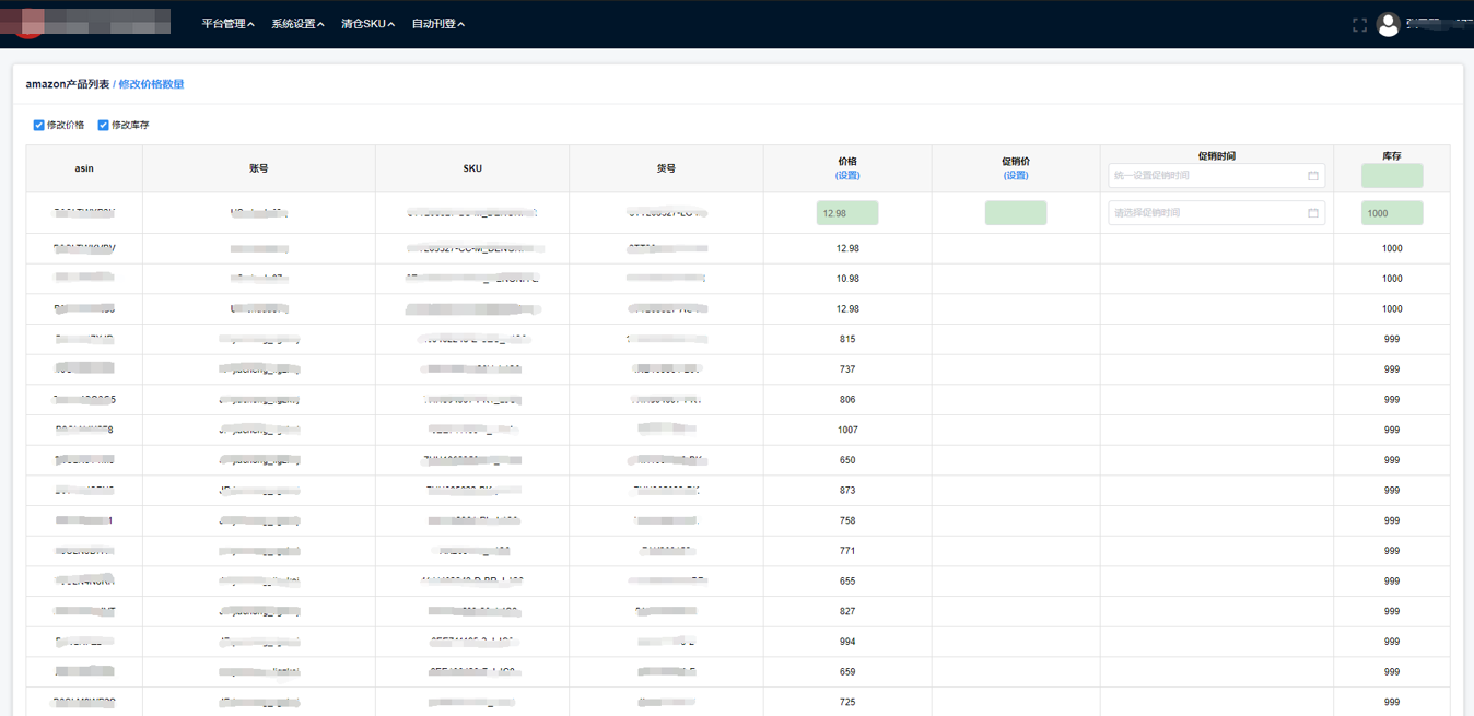 进入刊登系统在线列表,选择数据,点击修改价格数量按钮。跳转至在线列表修改价格数量页面,可输入价格,数量,调用平台接口提交至平台修改。